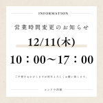 営業時間変更のお知らせ